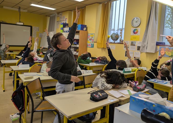 Un second atelier d’écriture a pu se tenir, les élèves ont travaillé par binômes à l’écriture d’un passage de l’histoire qui leur a été confié. C’était l’occasion pour l’auteur de distiller des mots de vocabulaire et procédés propres à l’écriture : trame, inclusion d’un narrateur omniscient, de dialogues, d’éléments perturbateurs…