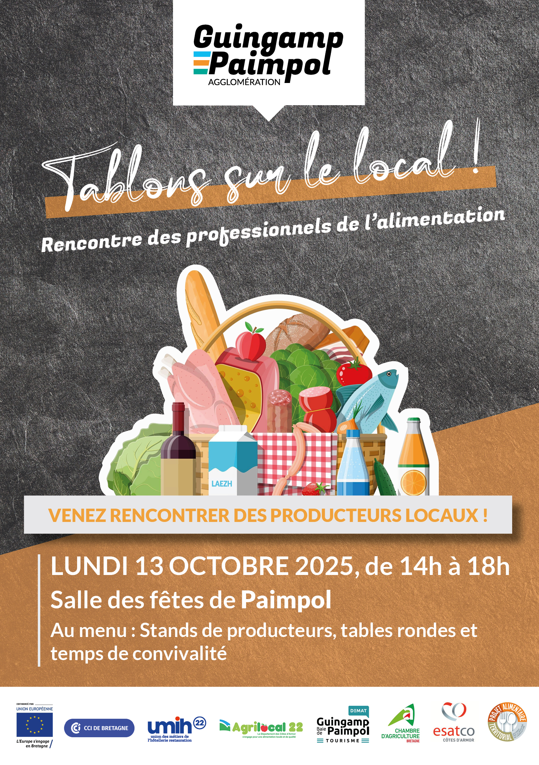 Une demi-journée de rencontres réservé aux professionnels de l’alimentation et producteurs locaux Le lundi 13 octobre 2025, de 14h00 à 18 h00 à la Salle des fêtes de Paimpol (Quai Loti)