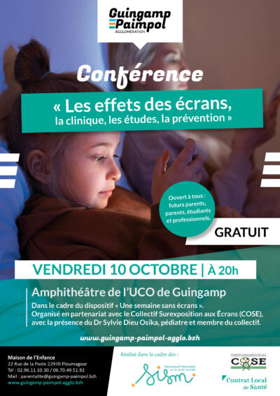 Dans le cadre de la nouvelle édition du dispositif « Une semaine sans écrans », Guingamp-Paimpol Agglomération et le Collectif COSE organisent une conférence sur l’exposition des enfants aux écrans.