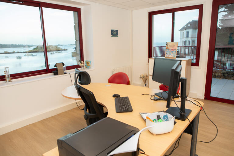 À l’étage, les bureaux et la salle de réunion ont été remis à neuf pour faire de la location aux entreprises liées à la mer. 2 studios ont également été aménagés pour accueillir des élèves, stagiaires ou saisonniers du secteur.