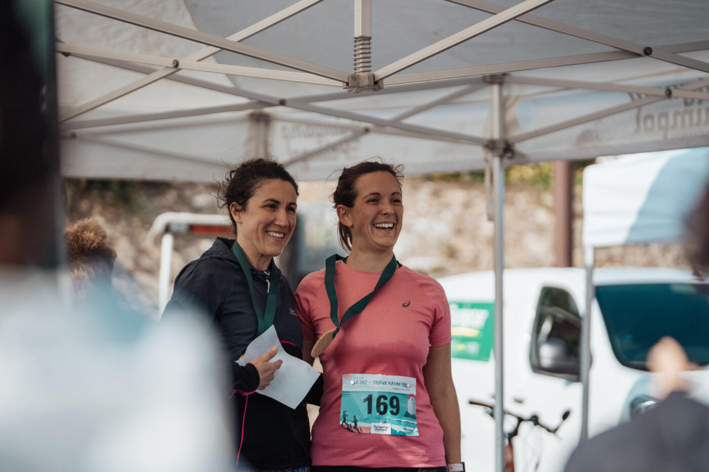 « Quand mon amie Enora m’a parlé de l’événement pour l’édition 2024, j’ai tout de suite contacté ma super copine de course à pied pour nous lancer sur un des formats ! Une collègue de travail avait participé à l’édition précédente, m’en avait parlé et avait adoré. Le concept original kayak/trail nous a tout de suite plu (un vrai challenge de se lancer sur la discipline kayak, nouveauté pour nous 2) et dans un cadre que nous ne connaissions pas très bien, un parcours de trail à découvrir : raison de plus pour nous inscrire. Nous avons choisi le format long, tant qu’à faire un peu de route pour participer autant y aller à fond. L’aventure en duo me plaisait énormément : être coordonnées sur le kayak, courir ensemble, se soutenir en cas de baisse de régime et franchir la ligne d’arrivée à 2. Nous étions débutantes en kayak, mais sportives et avec l’envie d’arrivée en tête de course, nous y sommes arrivées ! 3eme place sur le podium et de magnifiques souvenirs. La descente en kayak sur le Trieux nous a offert un spectacle fabuleux, quel site incroyable… Et le parcours du trail était super, quelques belles montées mais techniquement accessible à tous. Le concept est accessible à tout sportif, même si le kayak n’est pas un sport très habituel pour vous. L’organisation a été parfaite et l’ambiance super. J’ai très envie de retenter l’expérience pour 2025 (peut être avec un binôme mixte cette année?) et je vous recommande vivement de vous inscrire pour vivre un très beau moment sportif. »